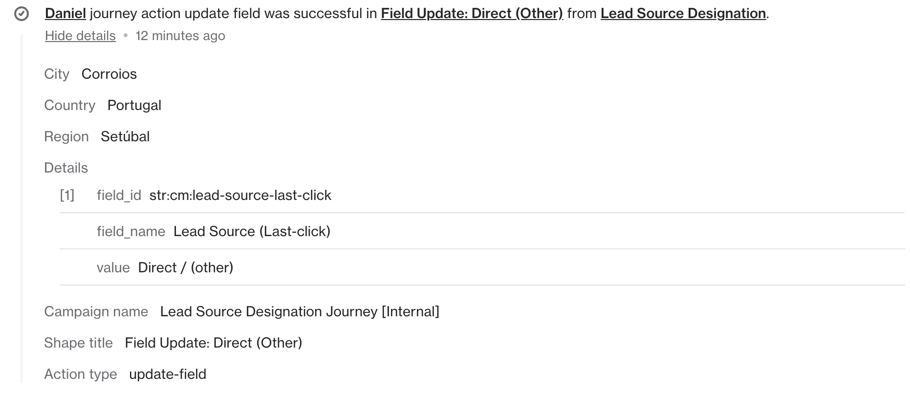 The Update field action allows you to update system or custom fields in Ortto.