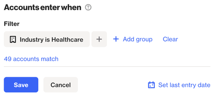 TIP: Since this is an Account journey, conditions are checked against the Account profile, not individual Contacts. If the Account meets the condition, the entire Account and all its Contacts will exit the journey.