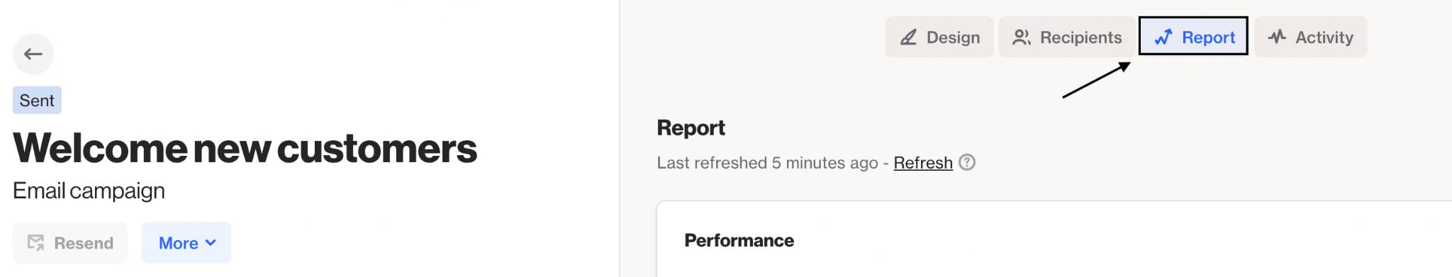 The email heatmap can be found within each email's Report tab. To view the heatmap, open the email and click on the Report tab: