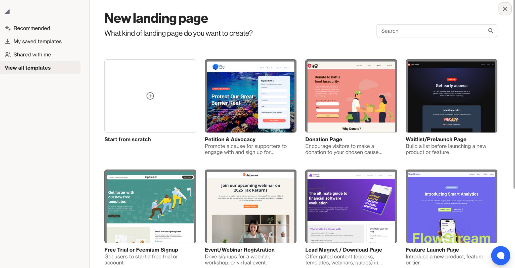 Creating a new landing page