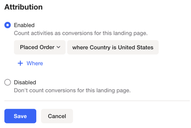 Attribution helps you track which landing pages drive conversions. In this section, you can set the activity that will count as a conversion for the landing page.
