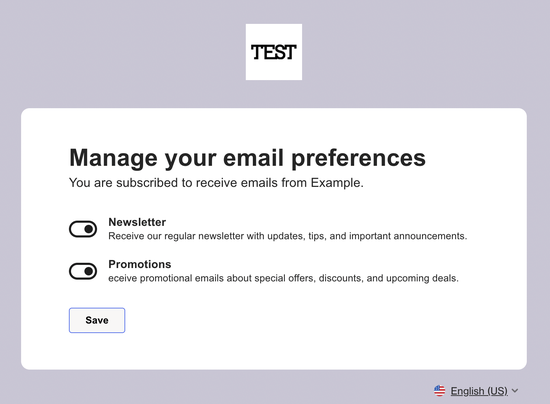 When contacts visit the Email Preference Center, they will see these fields and their current values reflected there, allowing them to subscribe or unsubscribe from each option independently.