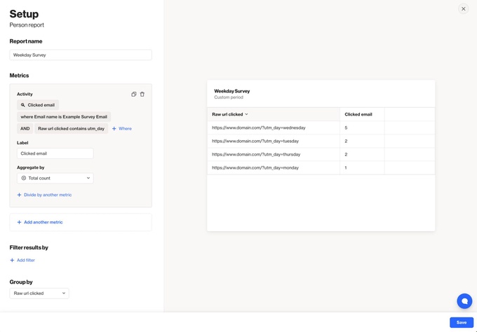 Because email clients don’t support form inputs or advanced interactions, surveys need to be simple and click-based. UTM parameters solve this by turning each response option into a tracked link.