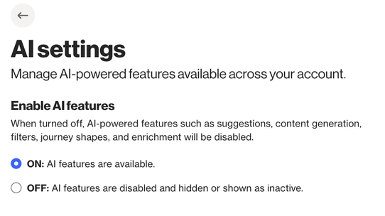 Ortto respects your organization's approach to AI and provides this setting to ensure you have complete control over how your account operates.