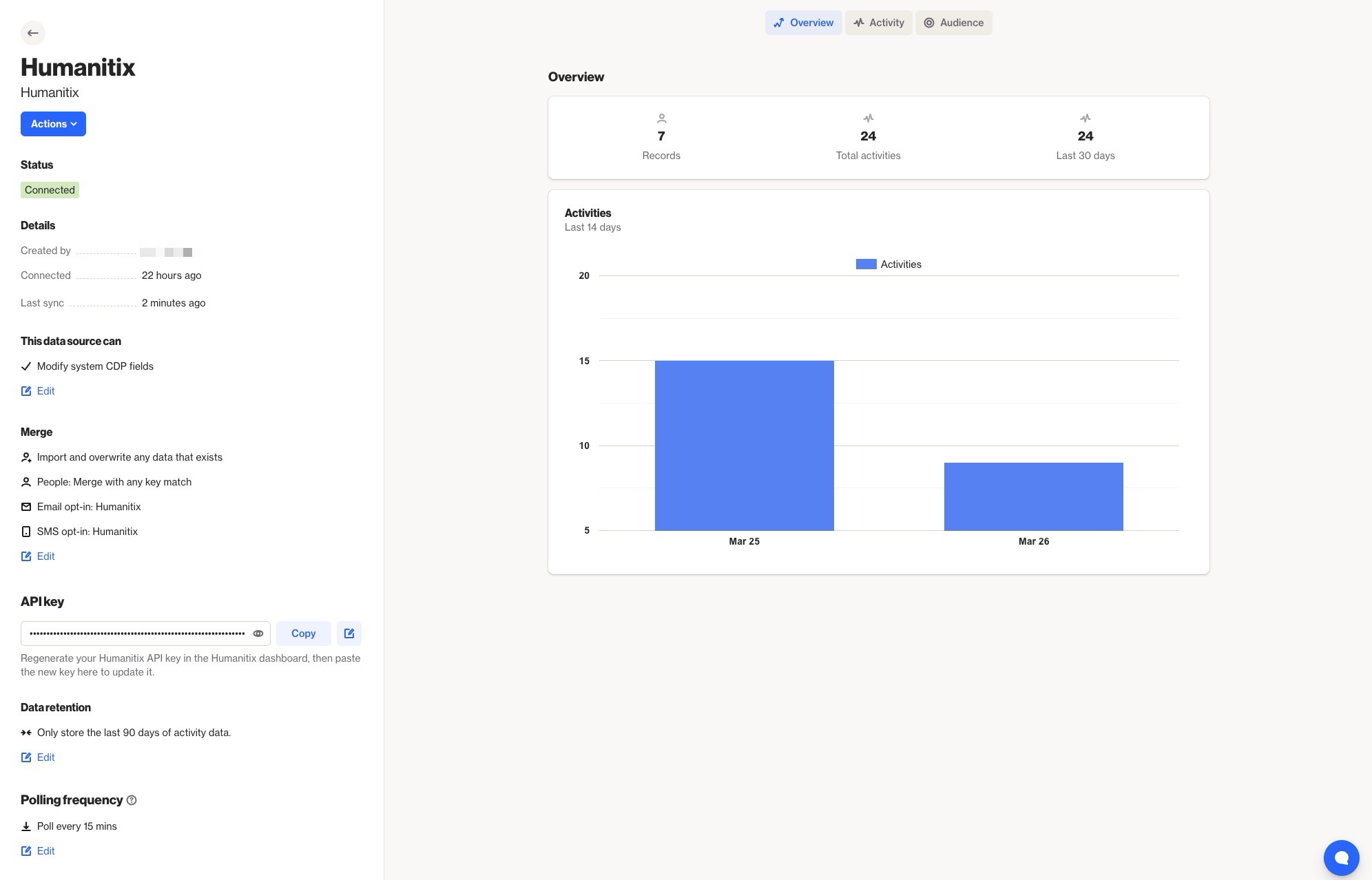NOTE: Deleting the Humanitix data source connection will not remove existing people or activity records that were previously merged into your CDP.