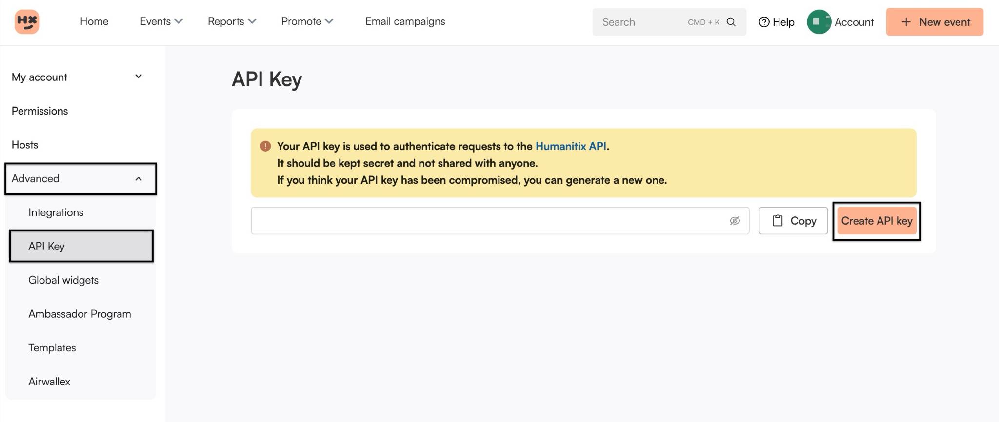 To create a Humanitix API key: